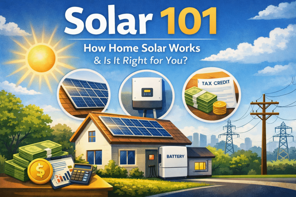 Home solar can feel complicated at first. Panels on the roof, inverters, utility bills, incentives, financing options, and a lot of unfamiliar terminology. Whether you’re actively considering solar or simply trying to understand a system that’s already on your home, this guide is designed to give you a clear, practical foundation.